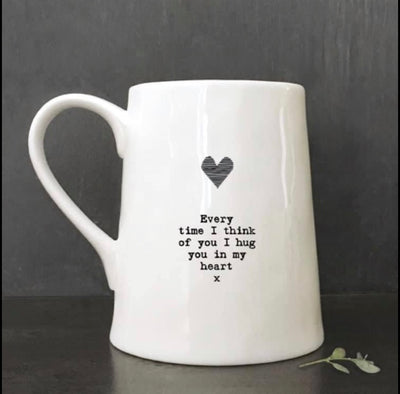 A porcelain mug with a sentimental note written on it. Measuring approx. 14.5 x 10 x 12.5cm and is wider at the bottom for a really sturdy cuppa. This pretty mug comes in a lovely presentation box making it a perfect gift.