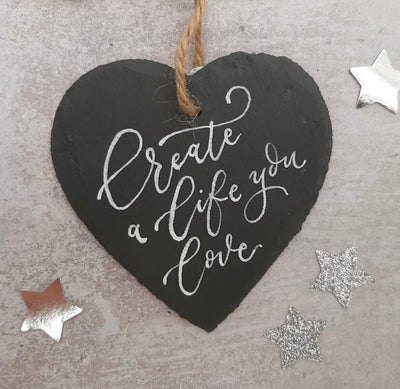 Send a unique handmade gift this Christmas. This slate plaque is hand personalised with white ink modern calligraphy, and includes a rustic twine string. Written in permanent ink, they are perfect to display inside or outside. Due to the handmade nature of this product variations may occur. Allow 14 days for delivery Large Slate Heart 20cm x 20cm